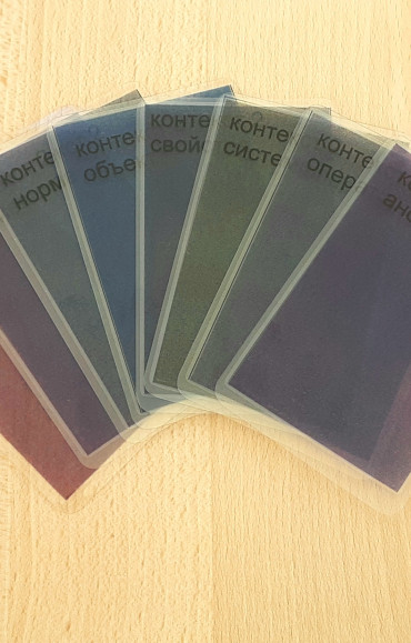 Изделие состоит из набора карточек, каждая из которых имеет свою ассоциативную привязку и может быть частично перепрограммирована оператором.